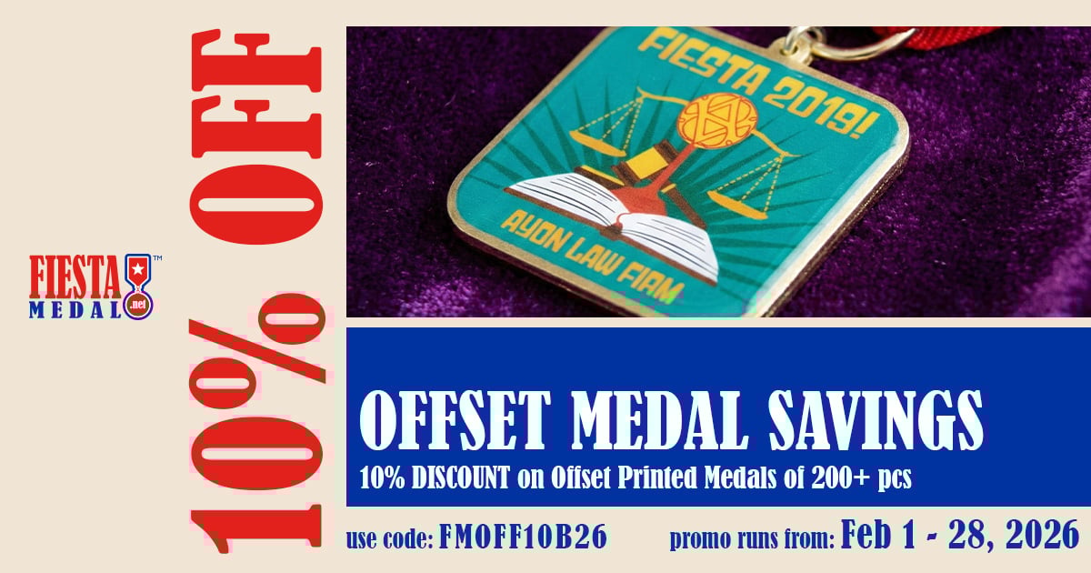 Get 10% OFF Offset Printed Medal orders of 200 or more. Use the code FMOFF10B26 on our quote form to apply.